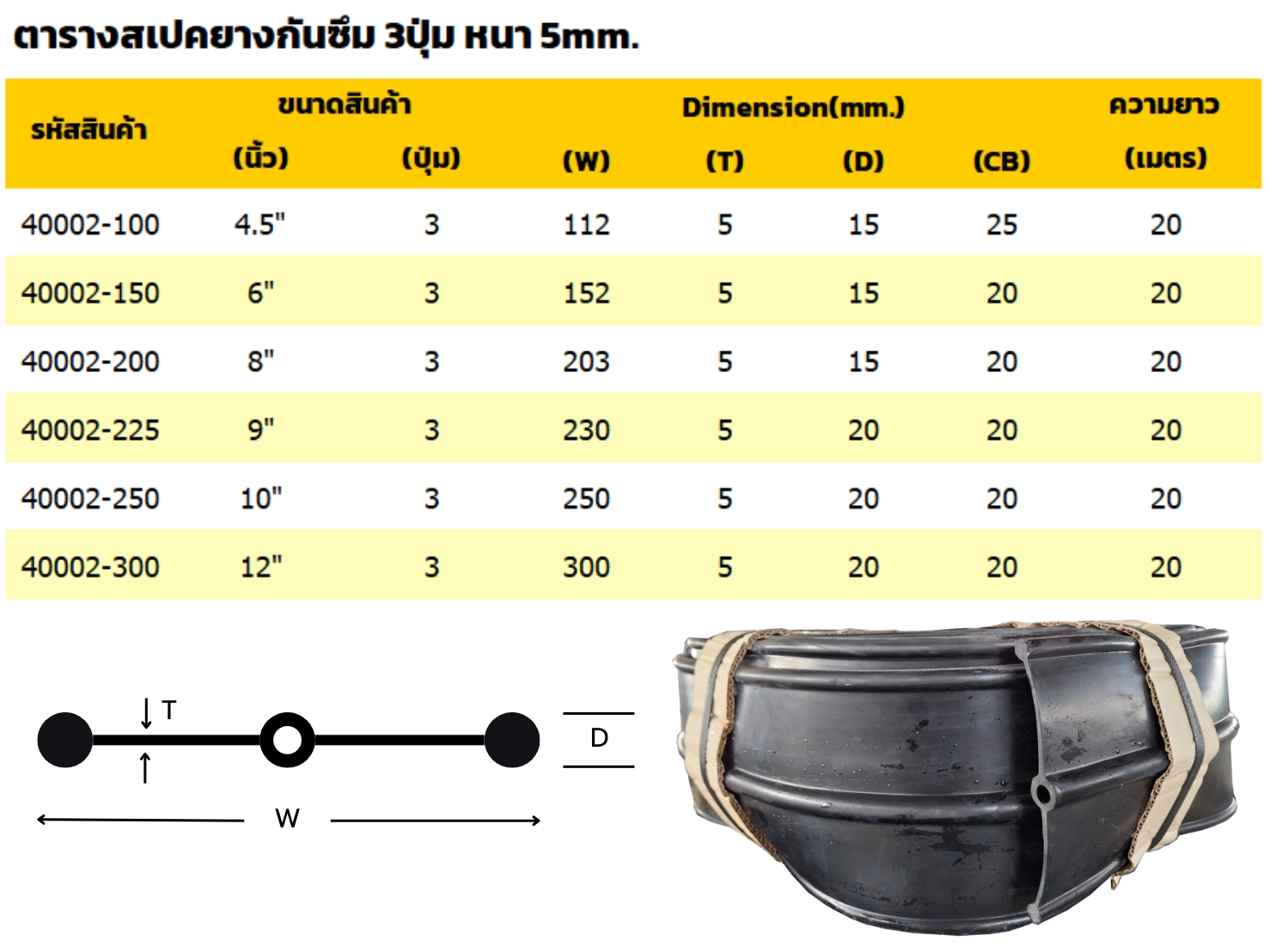 40002-100 ยางกันซึม 4.5"X3ปุ่มหนา5mm. 20 เมตร NET 📲 ราคา